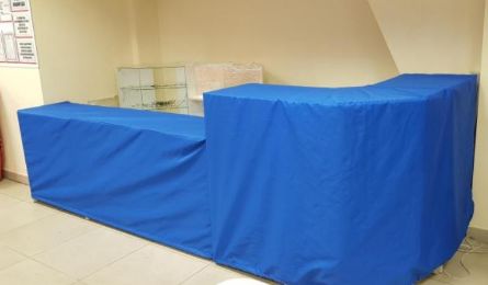 Чехлы из легкого и прочного материала для укрывания торгового оборудования в нерабочее время. Защита от пыли и посторонних глаз. Прочные молнии, стяжка по низу